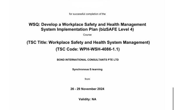 BizSAFE Level 4 certification
